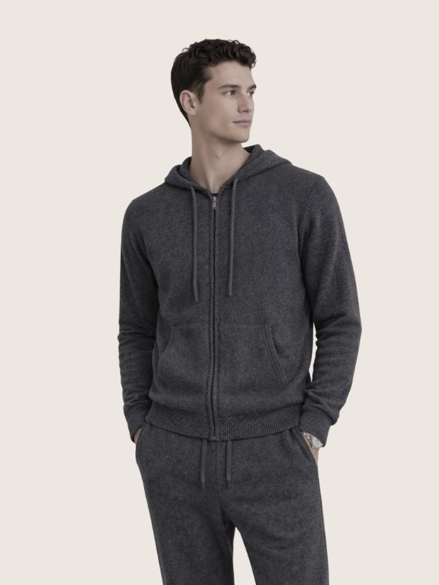 ØVRA træningsdragten er mesterligt fremstillet af 100% langhåret kashmir, vævet med øje for proportioner, detaljer og luksuriøs blødhed. Lynlåscardiganen og snørebukserne har rene, arkitektoniske linjer og diskrete ribmønstre, der elegant balancerer komfort med sofistikeret stil. Materialet føles let mod huden, falder ubesværet og skaber en silhuet, der bevæger sig flydende mellem afslappet fritid og stilfuld hverdagsbrug.