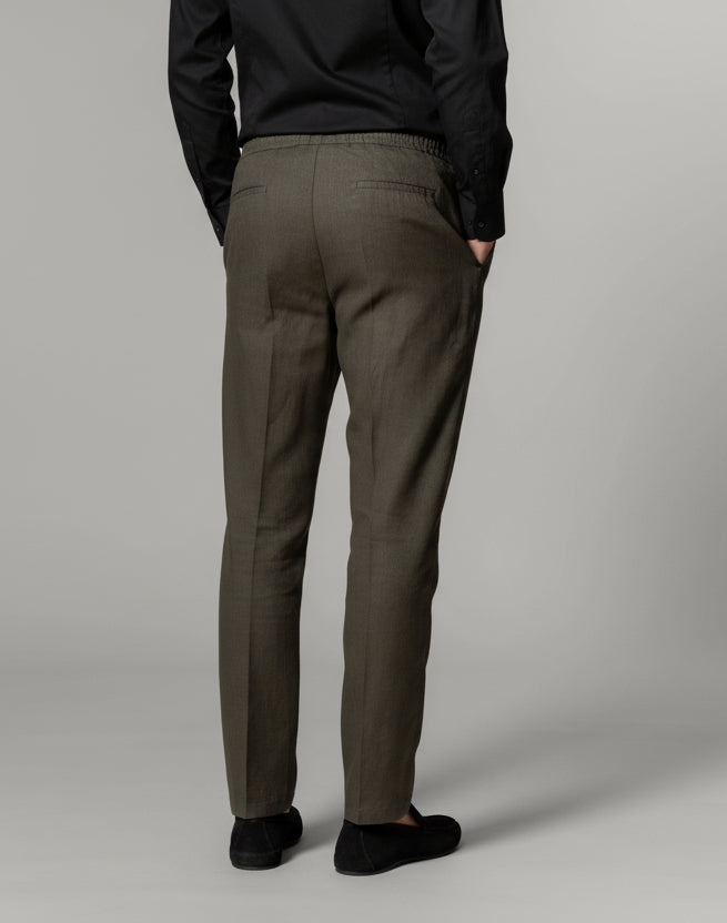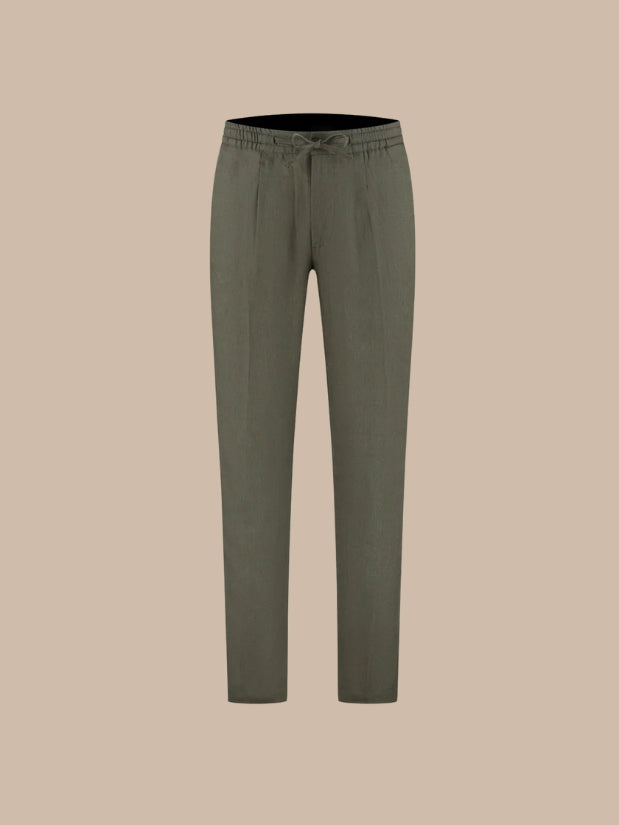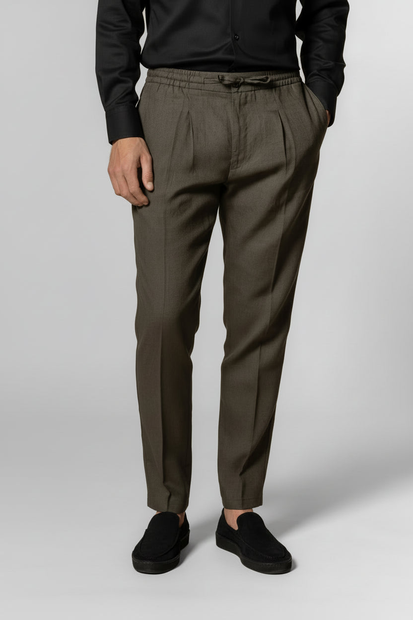 Disse bukser er fremstillet i let, åndbart hør, der føles blødt mod huden og lader kroppen ånde hele dagen. Den justerbare snøre i taljen sikrer en personlig pasform, mens det smalle, raffinerede snit giver en elegant silhuet. Perfekte til solrige dage, kombiner dem med en luftig poloshirt eller en afslappet skjorte for et look, der balancerer afslappet komfort med sofistikeret raffinement.