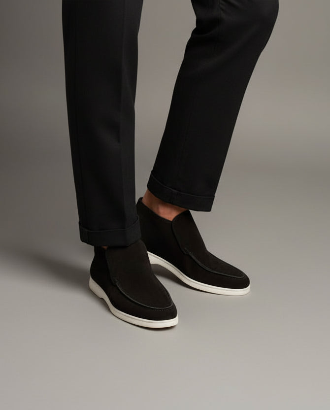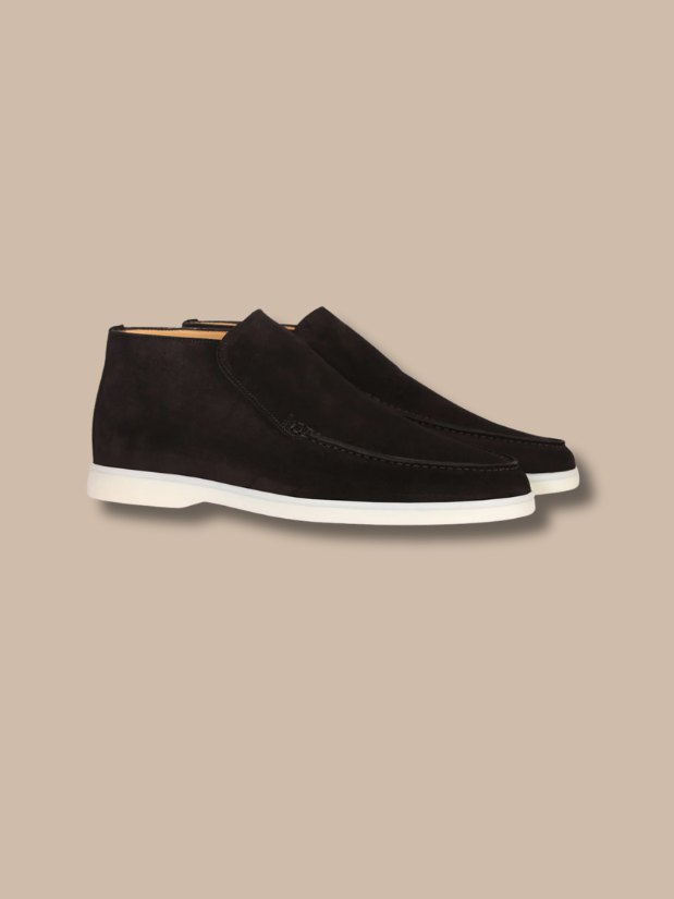 Disse Lovero Loafers kombinerer sofistikeret design med uovertruffen komfort. De er fremstillet af vores eksklusive Velasca® ruskind og har diskrete elastiske indlæg, så de glider ubesværet af og på uden at gå på kompromis med pasformen. Det glatte læderfor og de robuste, skridsikre gummisåler sikrer, at fødderne forbliver behagelige hele dagen, uanset tempoet. Perfekt til dem, der foretrækker et komplet og elegant look, der udstråler tidløs stil og kvalitet.